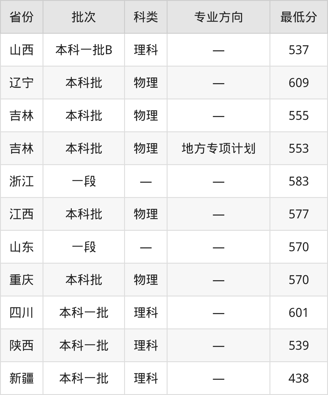 长春理工大学微电子科学与工程专业在全国各省录取分数线: