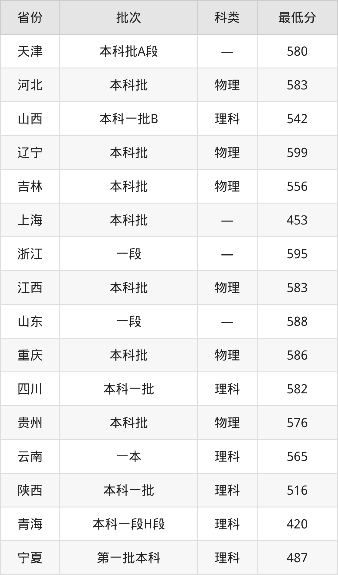 山西:理科最低542分