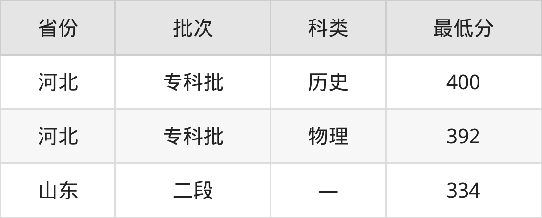 德州科技职业学院机电一体化技术专业录取分数线从334分到400分不等,最低分数线如下: