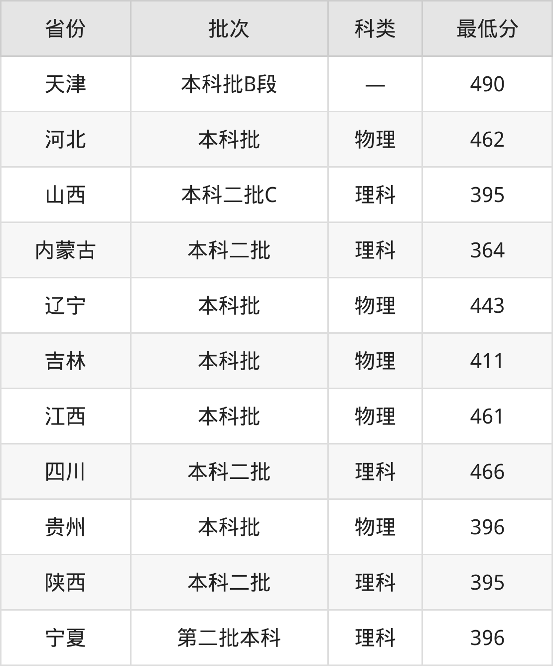 天津天狮学院护理学专业录取分数线从364分到490分不等,在部分地区的最低分数线如下: