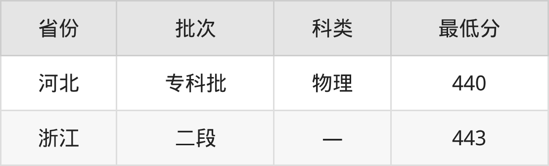 江西工程职业学院机电一体化技术专业录取分数线从440分到443分不等,最低分数线如下: