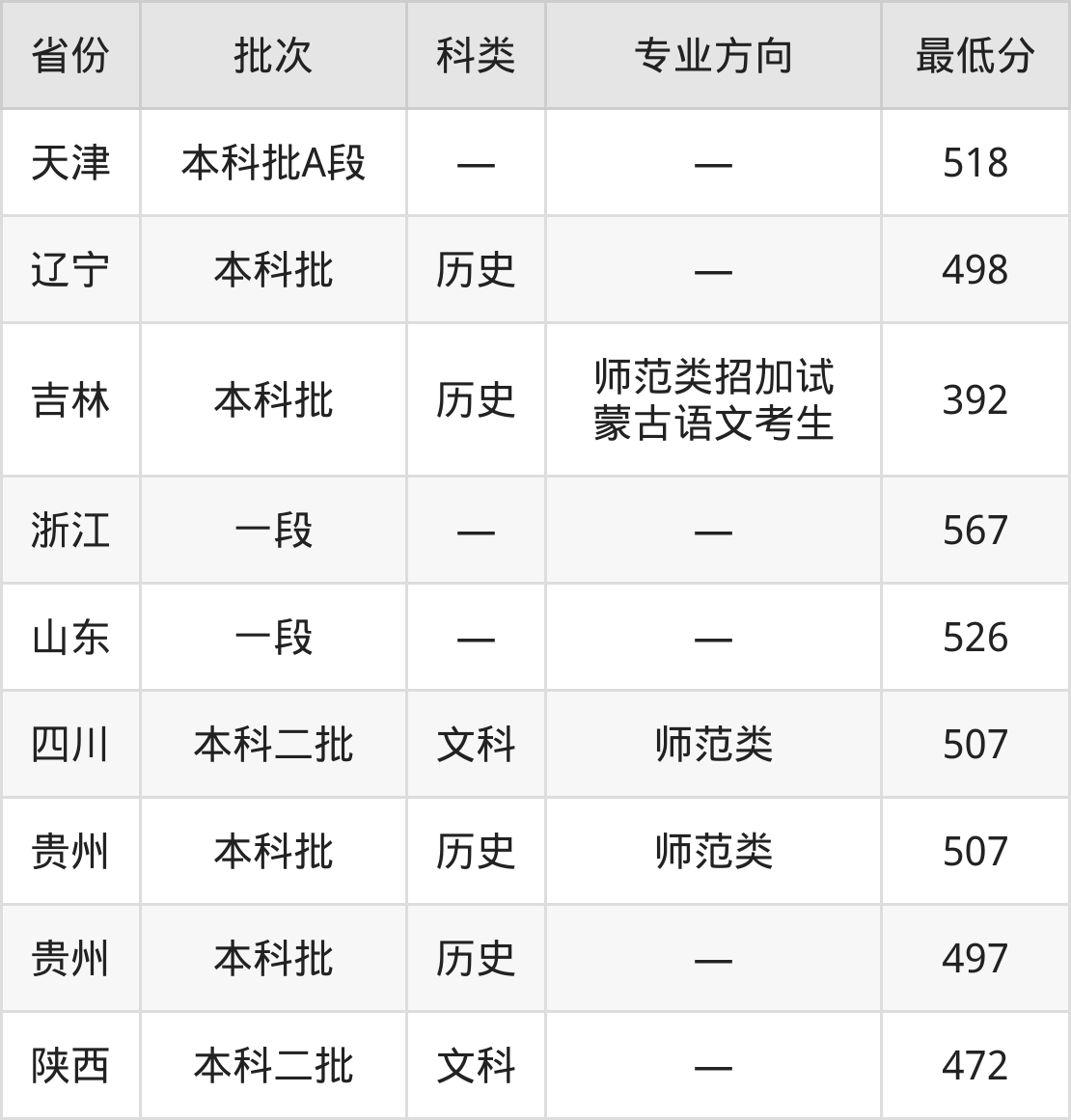 齐齐哈尔大学英语专业录取分数线从392分到567分不等,最低分数线如下:
