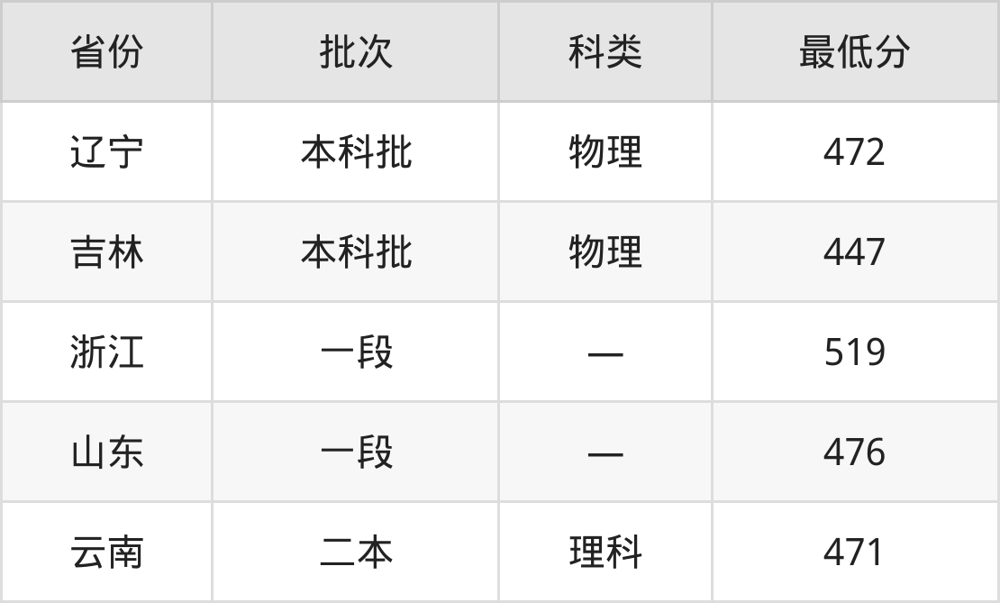 红河学院计算机科学与技术专业在全国各省最低录取分数线为447分(吉林物理类),除此之外,在其余地区的最低分为辽宁物理类472分、浙江519分、山东476分、云南理科471分,以上数据均为2024年数据,供2025年高考生参考。