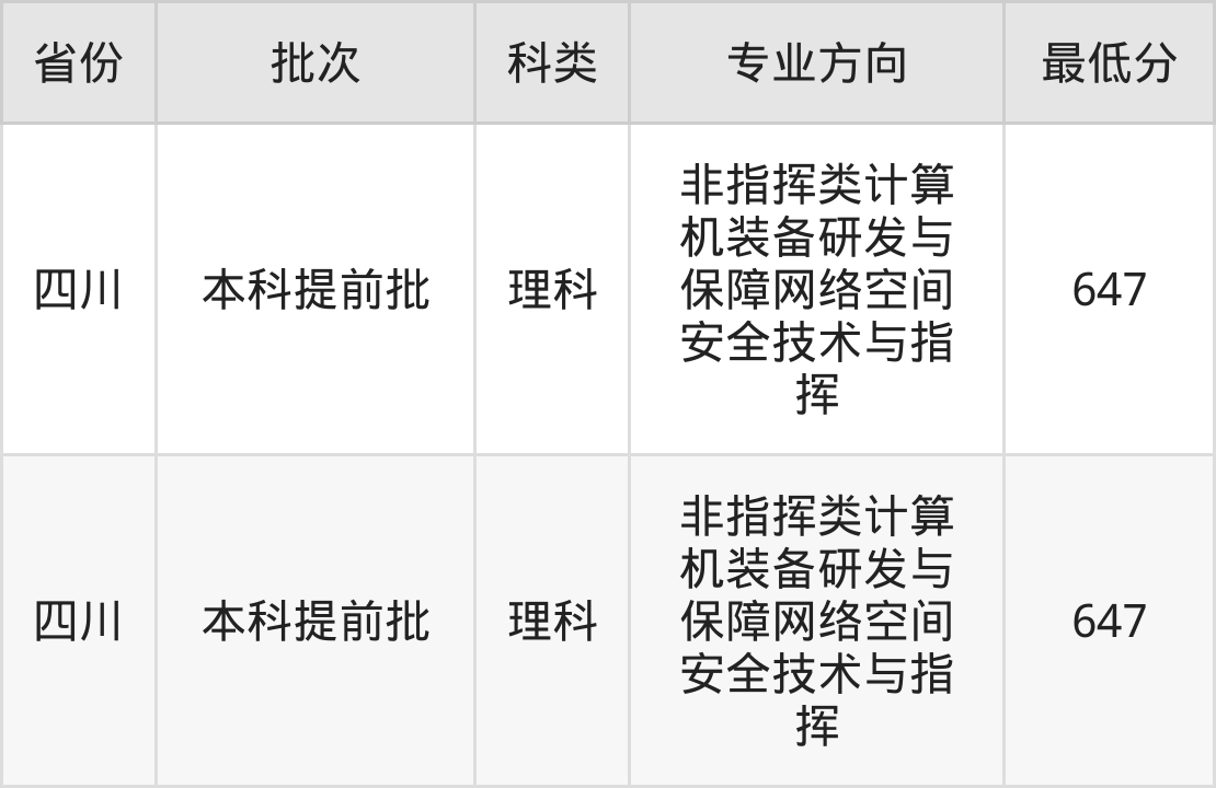 中国人民解放军战略支援部队信息工程大学计算机科学与技术专业录取分数线为647分