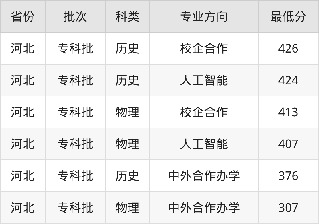 沧州幼儿师范高等专科学校计算机应用技术专业录取分数线从307分到426分不等,最低分数线如下: