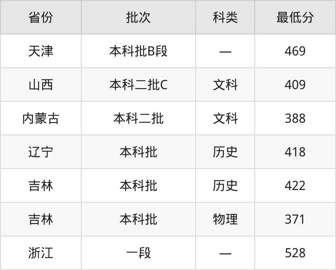 长春光华学院新闻学专业在全国各省最低录取分数线为371分(吉林物理类),除此之外,在其余地区的最低分为浙江528分、天津469分、山西文科409分、内蒙古文科388分等,以上数据均为2024年数据,供2025年高考生参考。