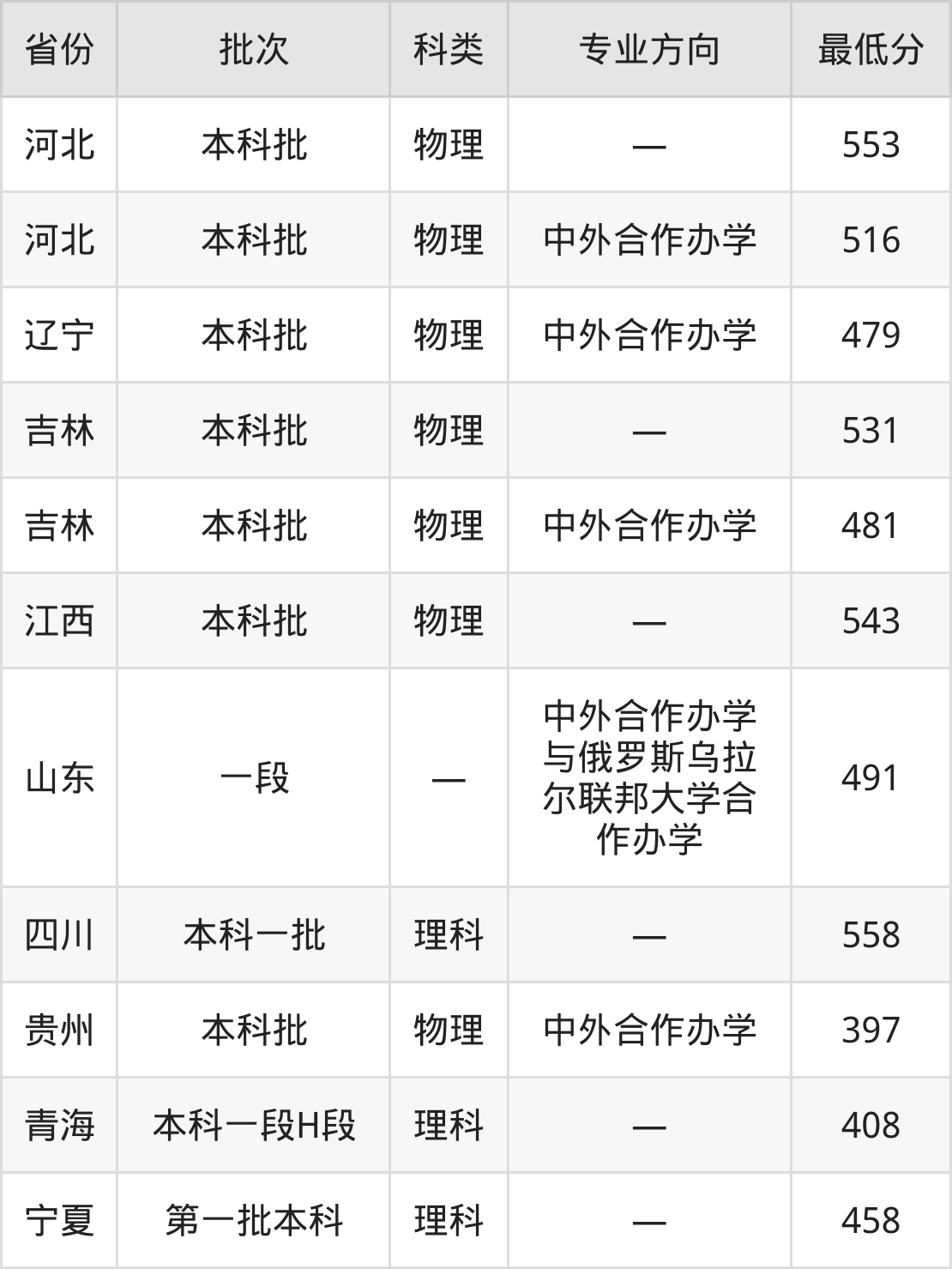 华北水利水电大学给排水科学与工程专业在全国各省最低录取分数线为397分(贵州物理类),除此之外,在其余地区的最低分为山东491分、四川理科558分、青海理科408分、宁夏理科458分等,以上数据均为2024年数据,供2025年高考生参考。