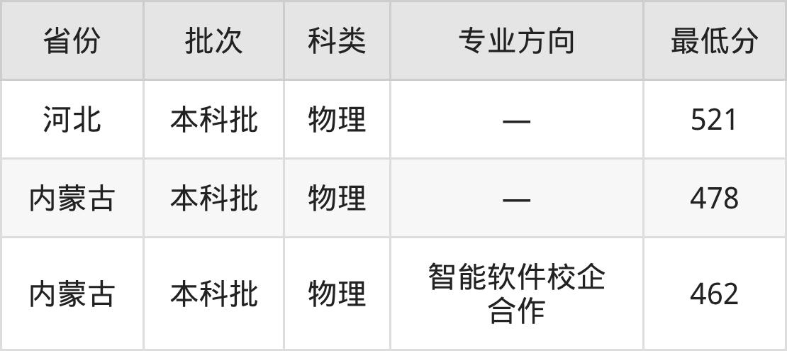 鄂尔多斯应用技术学院计算机科学与技术专业在全国各省最低录取分数线为462分(内蒙古物理类),除此之外,在其余地区的最低分为河北物理类521分,以上数据均为2025年数据,供2026年高考生参考。