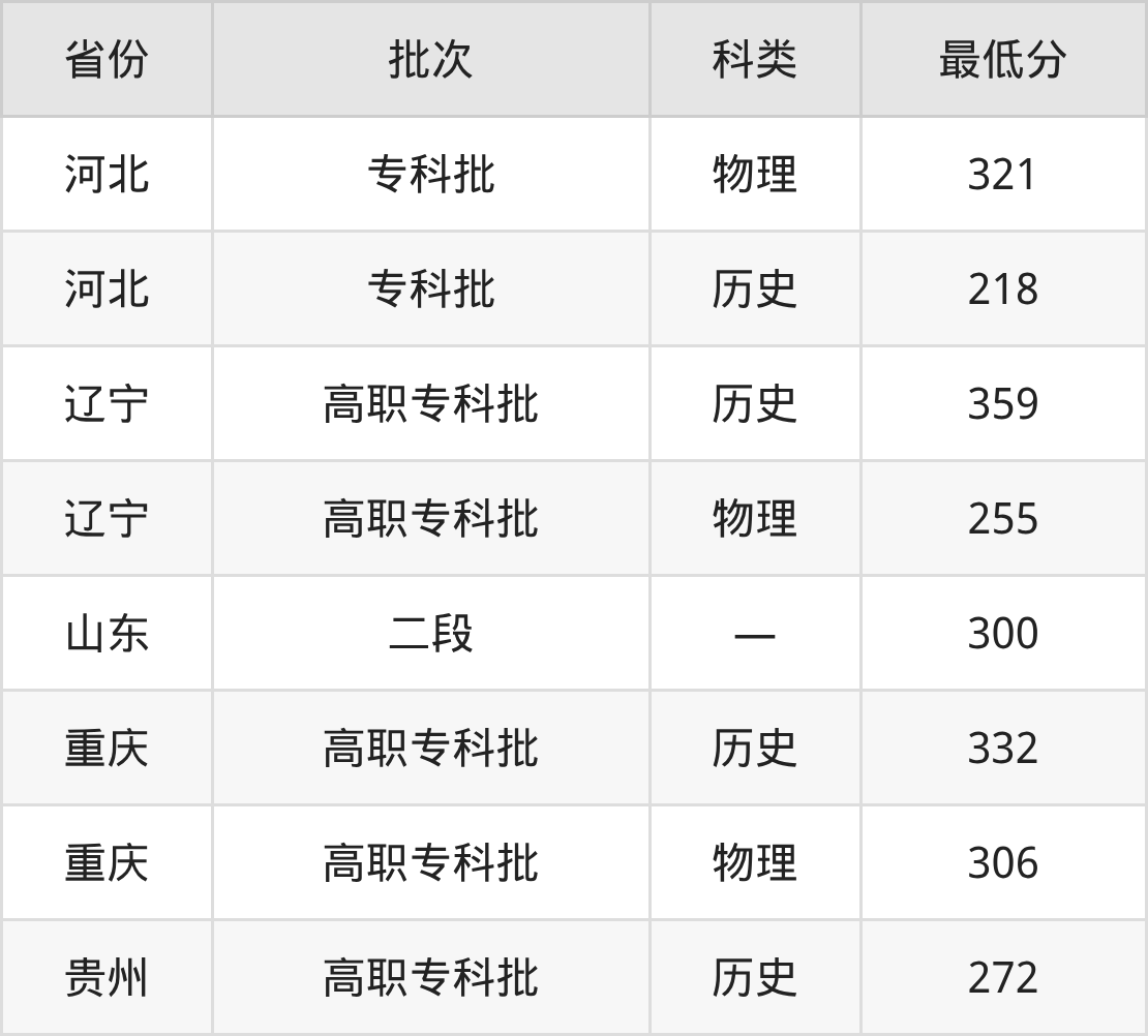 民办四川天一学院动物医学专业在全国各省最低录取分数线为218分(河北历史类),除此之外,在其余地区的最低分为辽宁物理类255分、山东300分、重庆物理类306分、贵州历史类272分,以上数据均为2025年数据,供2026年高考生参考。