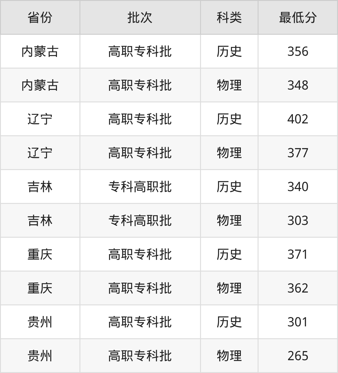 贵州:历史组最低301分、物理组最低265分