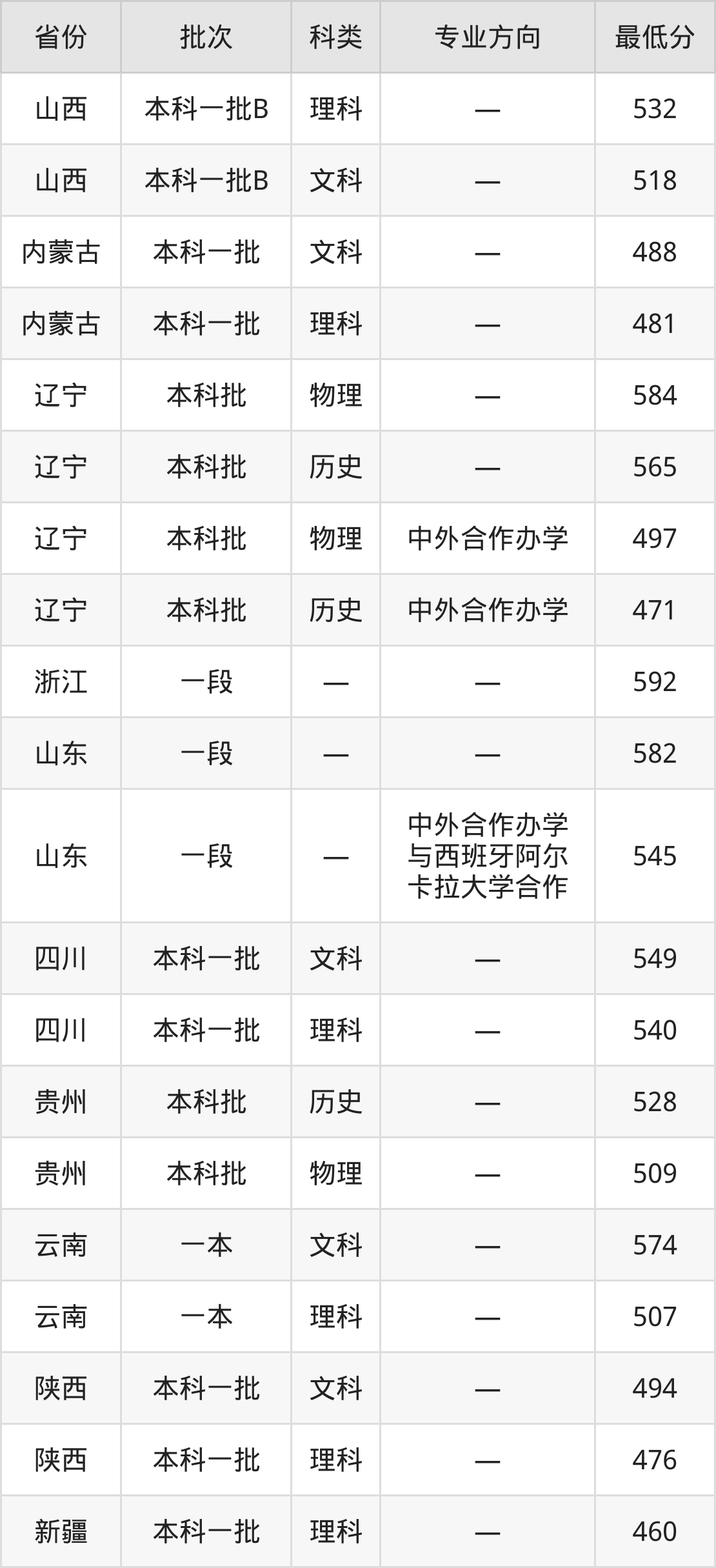 大连外国语大学西班牙语专业在全国各省录取分数线: