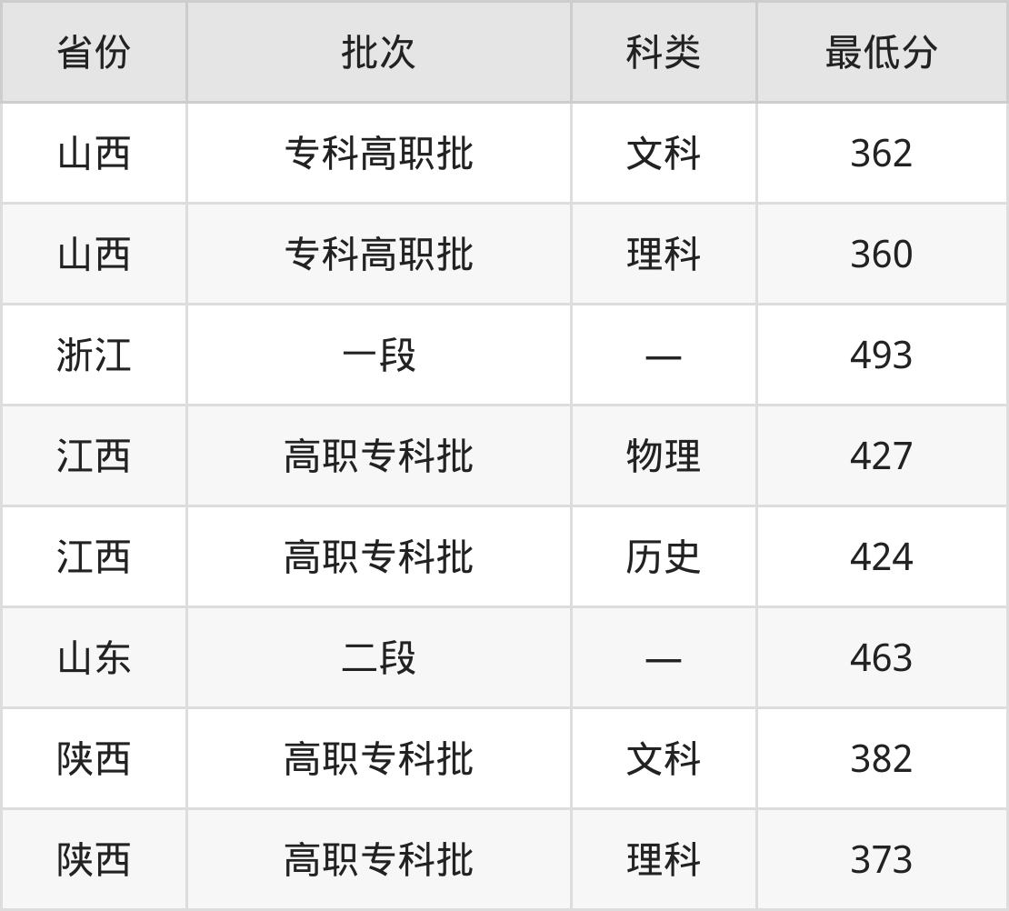 南京科技职业学院数字媒体技术专业在全国各省最低录取分数线为360分(山西理科),除此之外,在其余地区的最低分为浙江493分、江西历史类424分、山东463分、陕西理科373分等,以上数据均为2024年数据,供2025年高考生参考。