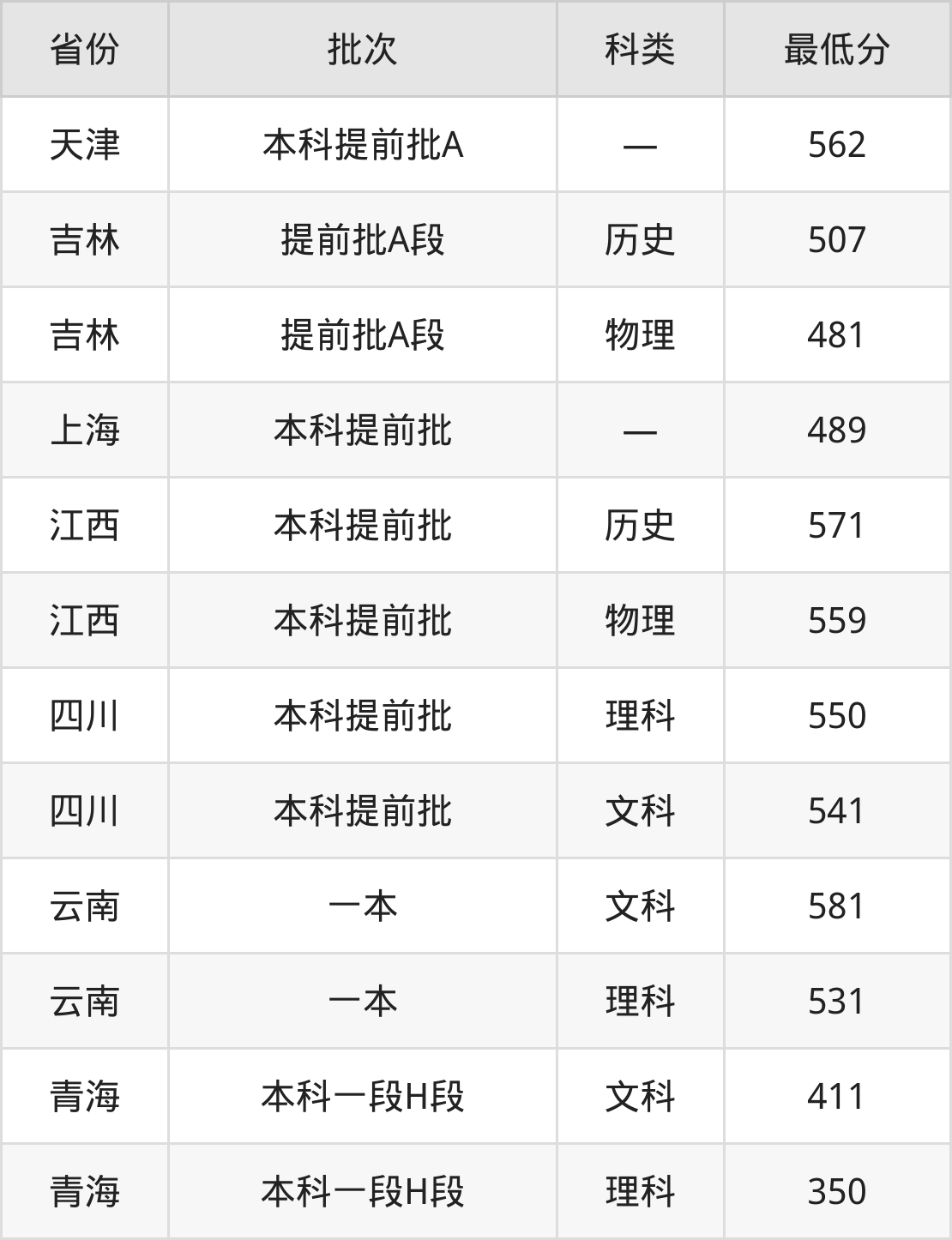 四川外国语大学日语专业录取分数线从350分到581分不等,最低分数线如下: