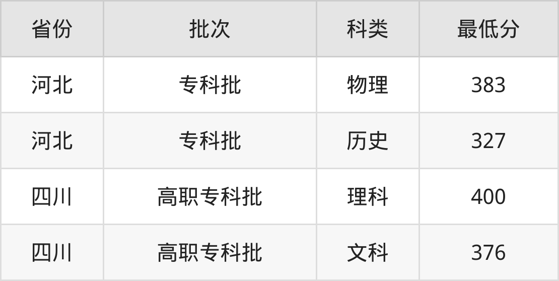 新疆生产建设兵团兴新职业技术学院建设工程管理专业在全国各省最低录取分数线为327分(河北历史类),除此之外,在其余地区的最低分为四川文科376分,以上数据均为2024年数据,供2025年高考生参考。