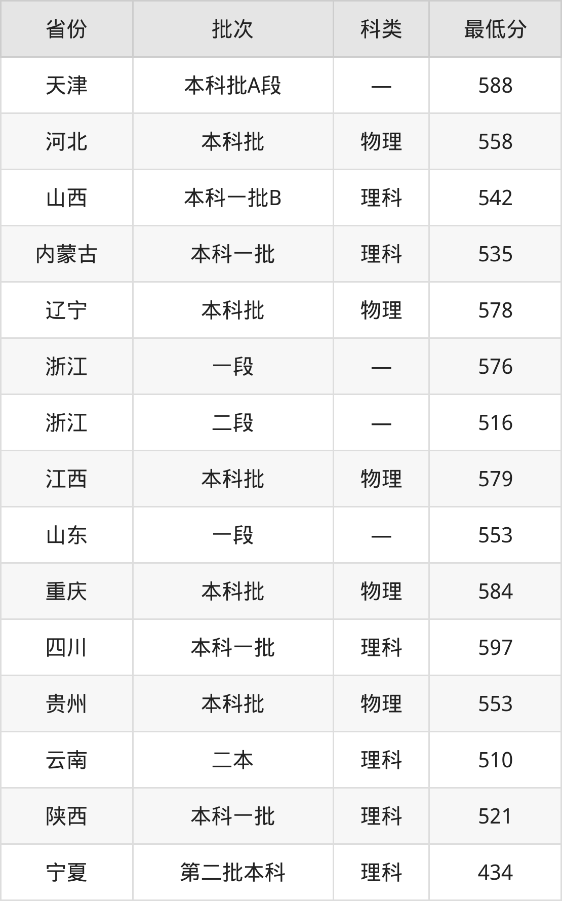 海南医科大学医学影像学专业录取分数线从434分到597分不等,在部分地区的最低分数线如下: