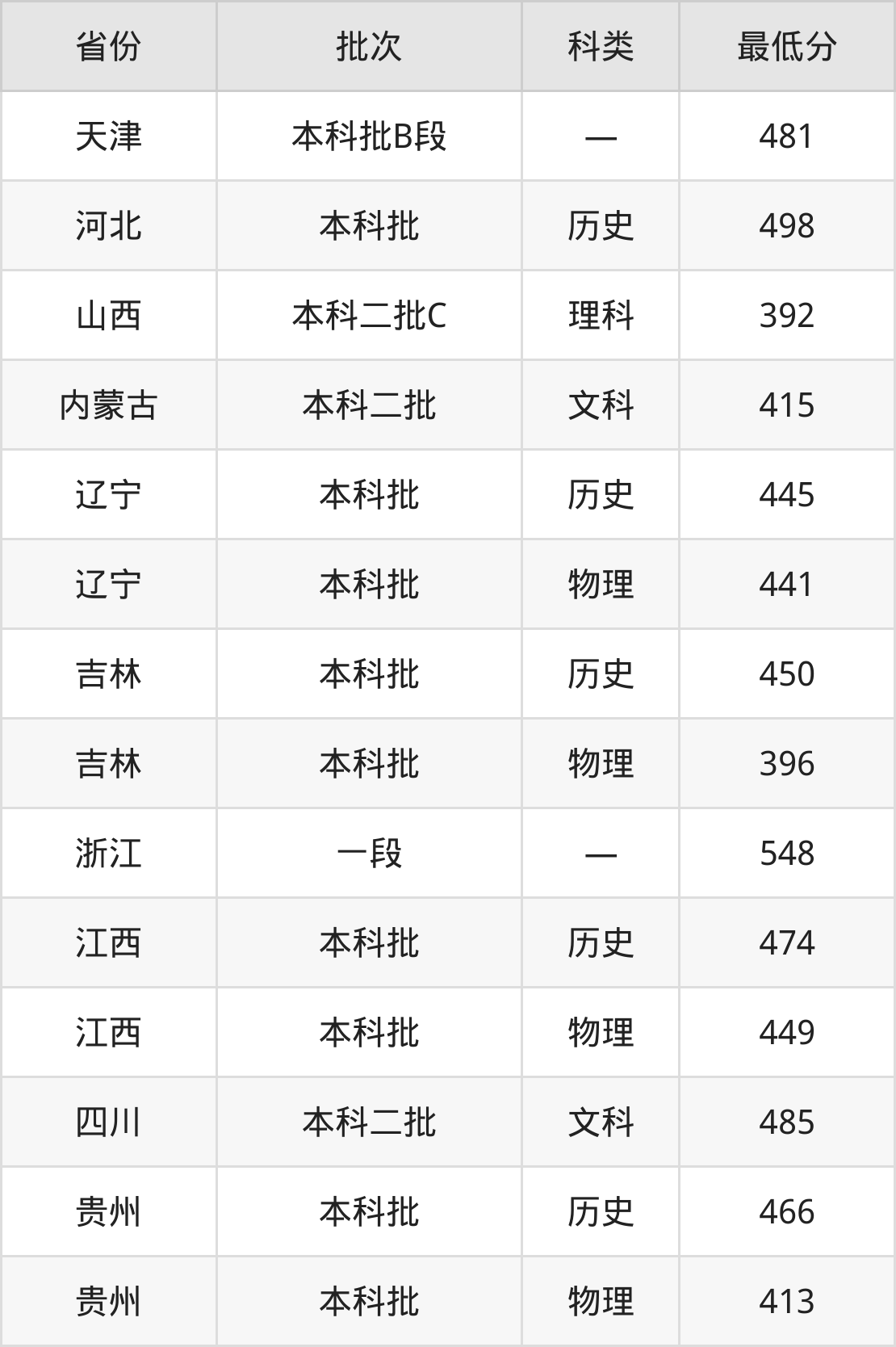 长春人文学院法学专业在全国各省最低录取分数线为392分(山西理科),除此之外,在其余地区的最低分为天津481分、吉林物理类396分、浙江548分、江西物理类449分等,以上数据均为2024年数据,供2025年高考生参考。