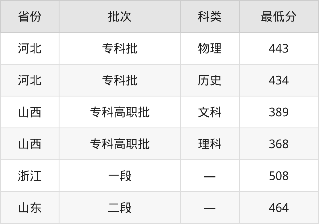浙江经济职业技术学院应用英语专业录取分数线从368分到508分不等,最低分数线如下: