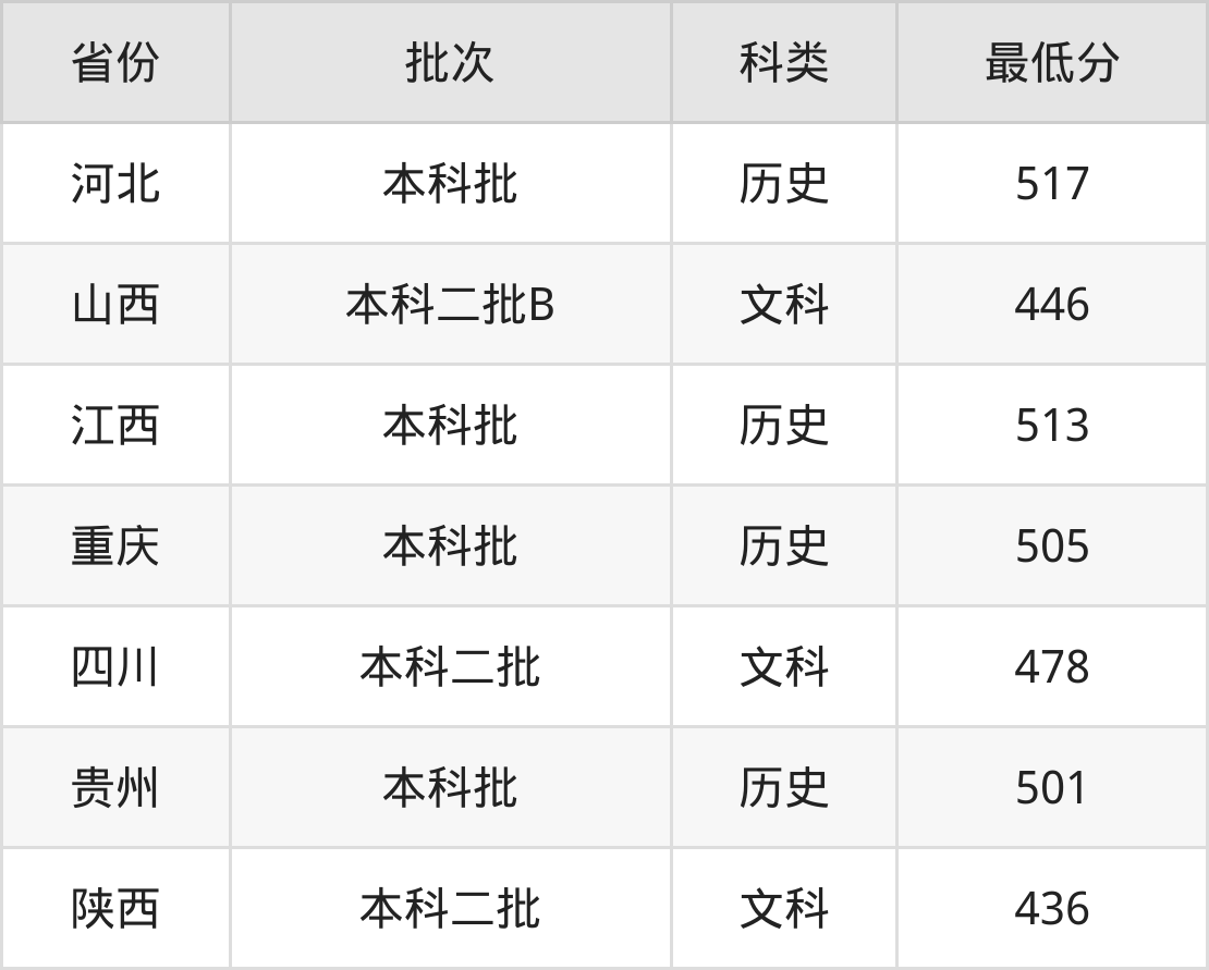 琼台师范学院网络与新媒体专业在全国各省最低录取分数线为436分(陕西文科),除此之外,在其余地区的最低分为江西历史类513分、重庆历史类505分、四川文科478分、贵州历史类501分等,以上数据均为2024年数据,供2025年高考生参考。