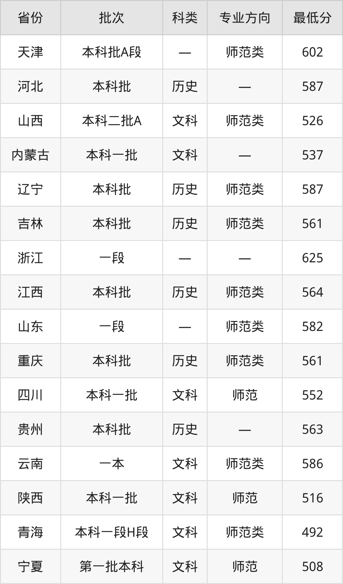河北师范大学汉语言文学专业录取分数线从492分到625分不等,在部分地区的最低分数线如下: