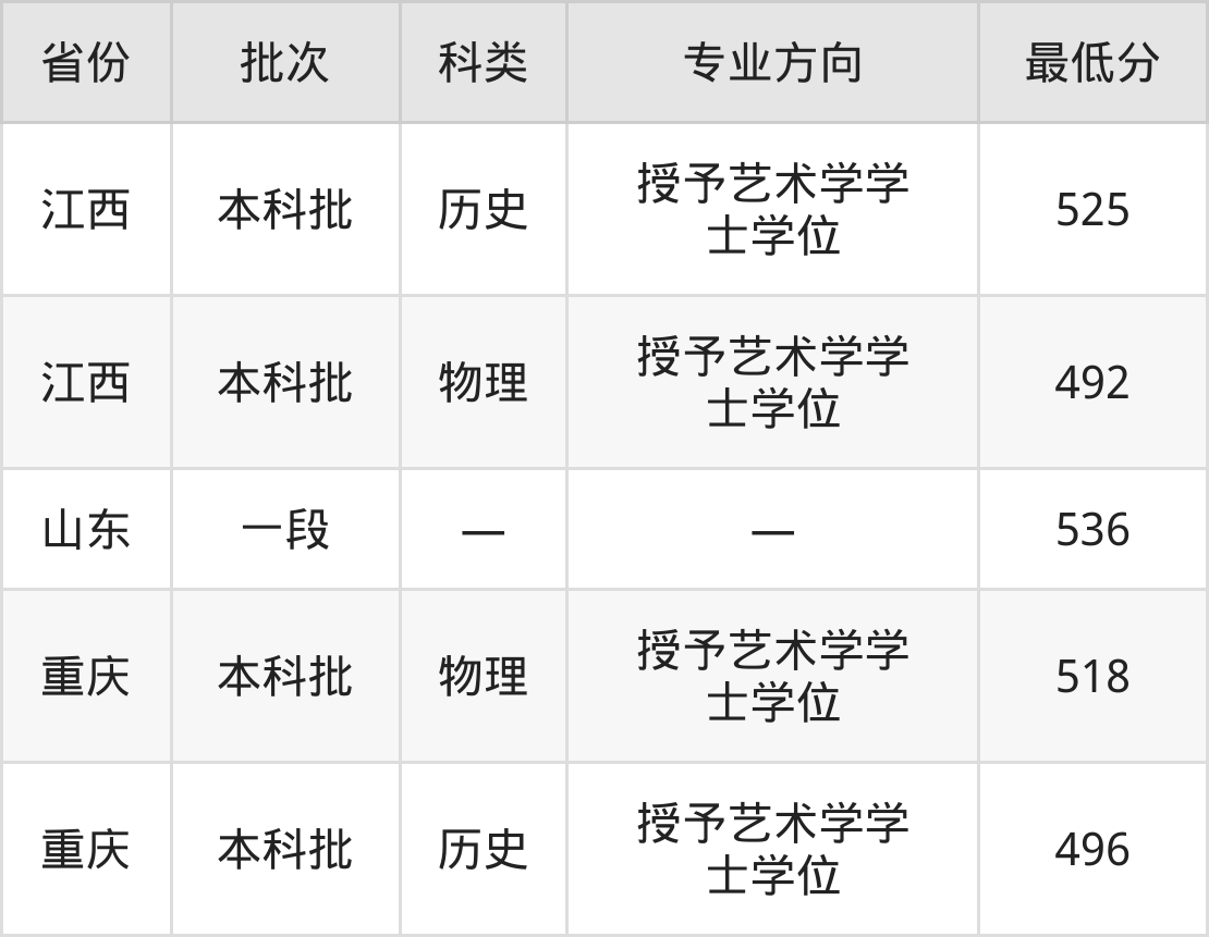 重庆师范大学广播电视编导专业录取分数线从492分到536分不等,最低分数线如下: