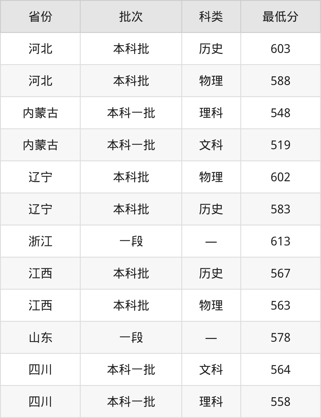 河南财经政法大学会计学专业在全国各省最低录取分数线为519分(内蒙古文科),除此之外,在其余地区的最低分为山东578分、四川理科558分、河北物理类588分、辽宁历史类583分等,以上数据均为2024年数据,供2025年高考生参考。
