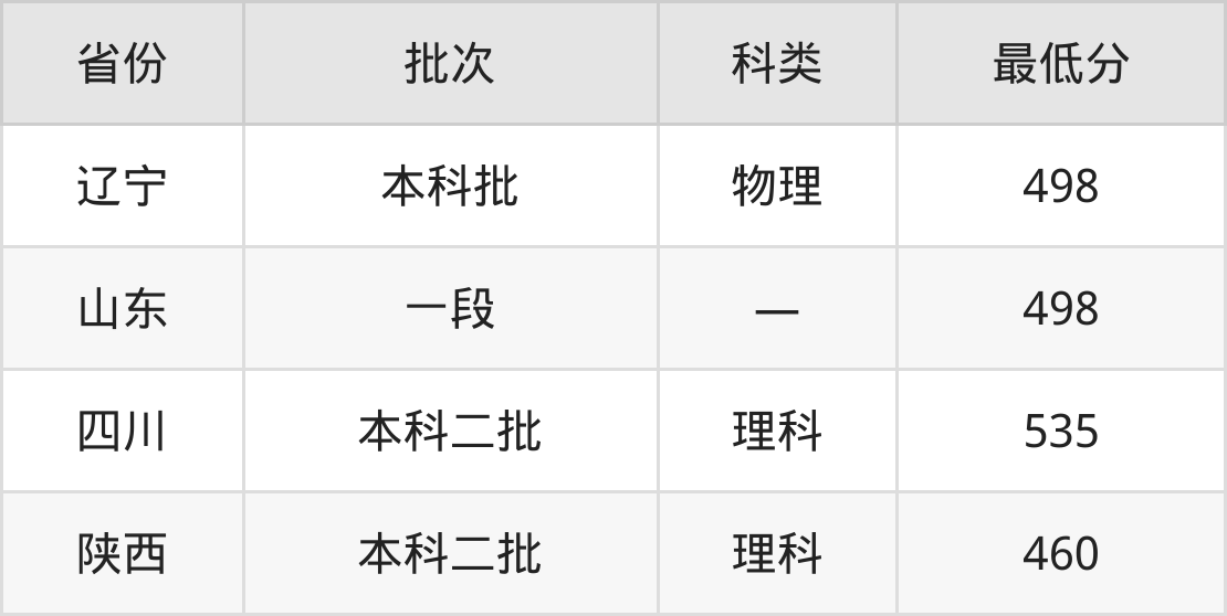 广东石油化工学院石油工程专业在全国各省最低录取分数线为460分(陕西理科),除此之外,在其余地区的最低分为山东498分、四川理科535分、辽宁物理类498分,以上数据均为2024年数据,供2025年高考生参考。
