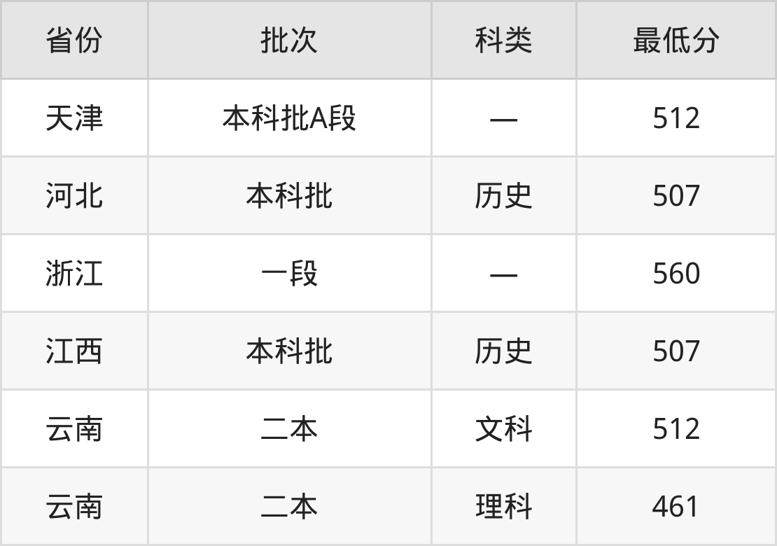 红河学院网络与新媒体专业在全国各省最低录取分数线为461分(云南理科),除此之外,在其余地区的最低分为天津512分、河北历史类507分、浙江560分、江西历史类507分,以上数据均为2024年数据,供2025年高考生参考。