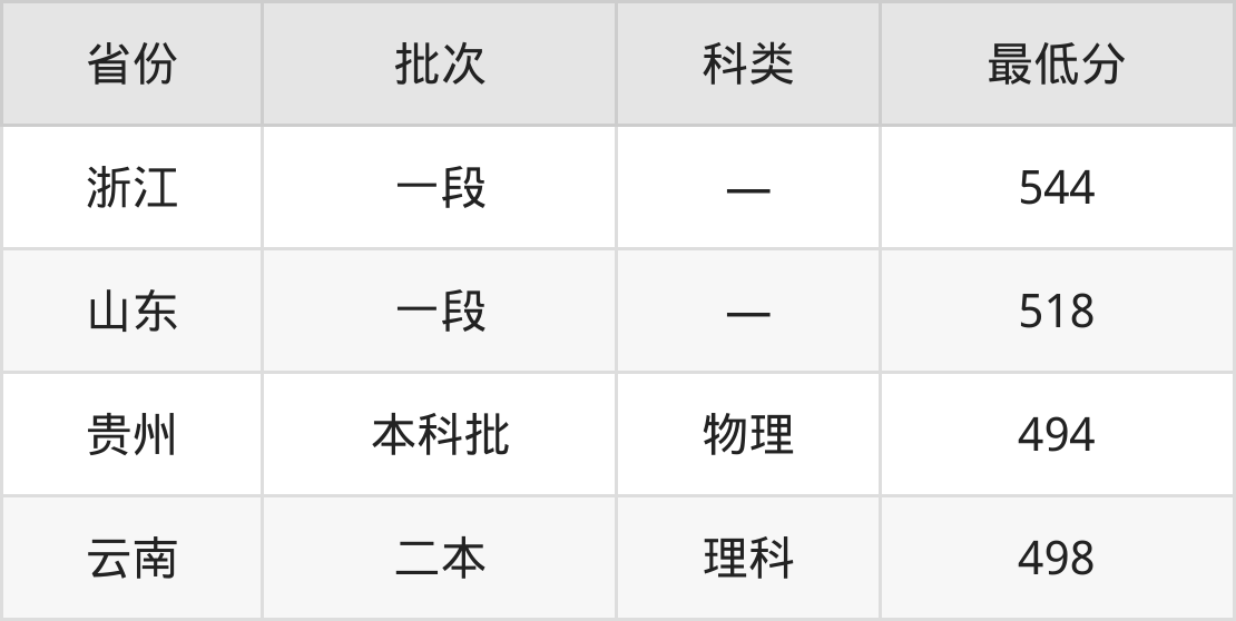 山东第二医科大学大数据管理与应用专业在全国各省最低录取分数线为494分(贵州物理类),除此之外,在其余地区的最低分为浙江544分、山东518分、云南理科498分,以上数据均为2024年数据,供2025年高考生参考。