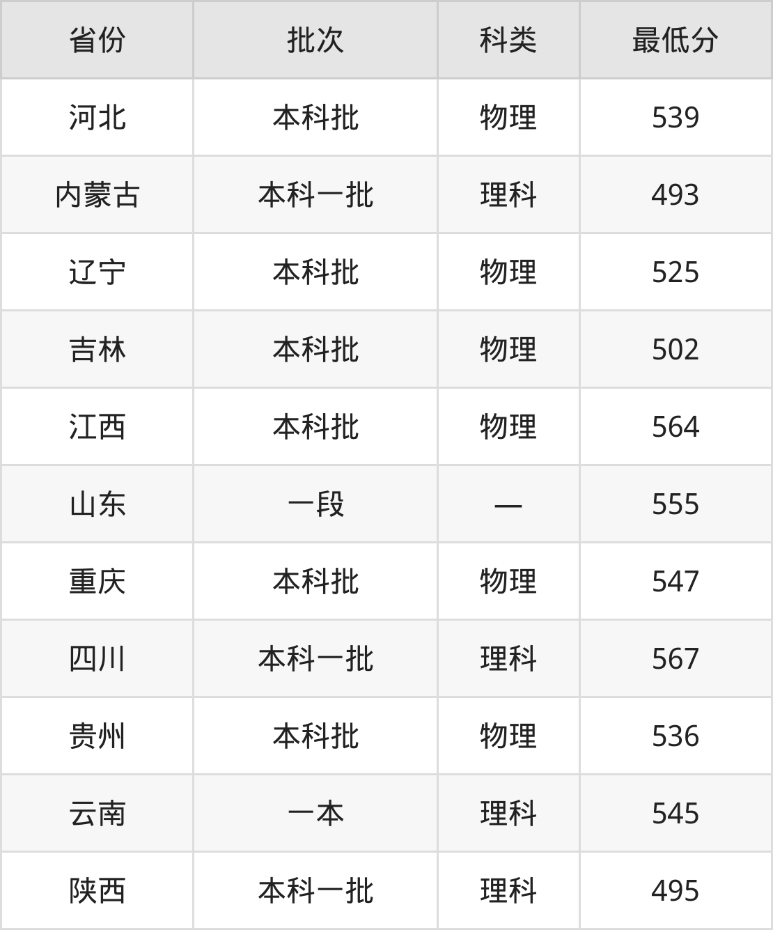 湖南科技大学测绘工程专业录取分数线从493分到567分不等,在部分地区的最低分数线如下: