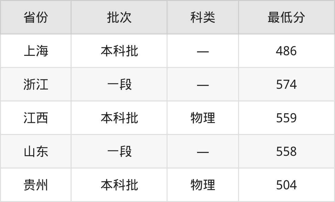 浙江农林大学生物制药专业在全国各省最低录取分数线为486分(上海),除此之外,在其余地区的最低分为浙江574分、江西物理类559分、山东558分、贵州物理类504分等,以上数据均为2024年数据,供2025年高考生参考。