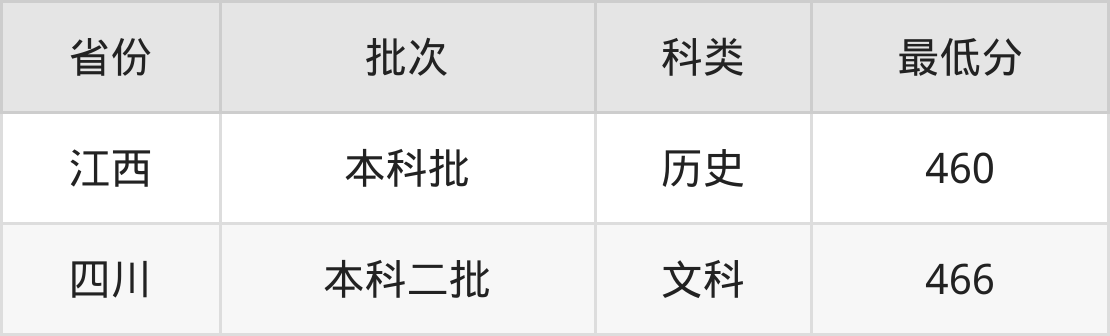 江西:历史组最低460分