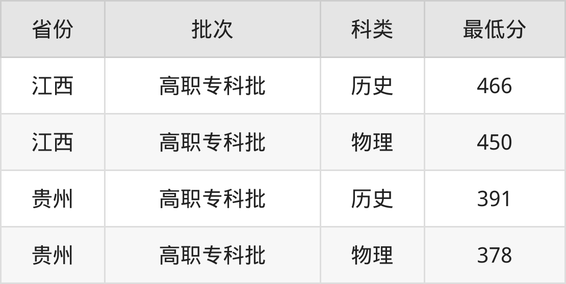 浙江金融职业学院保险实务专业录取分数线从378分到466分不等,最低分数线如下:
