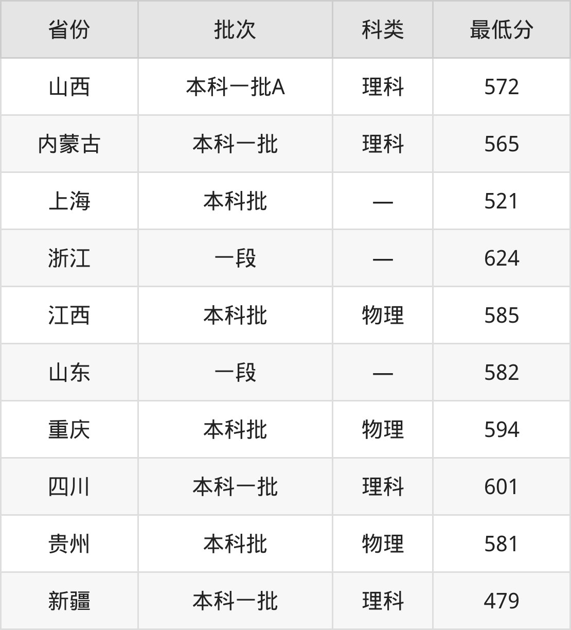 新疆:理科最低479分