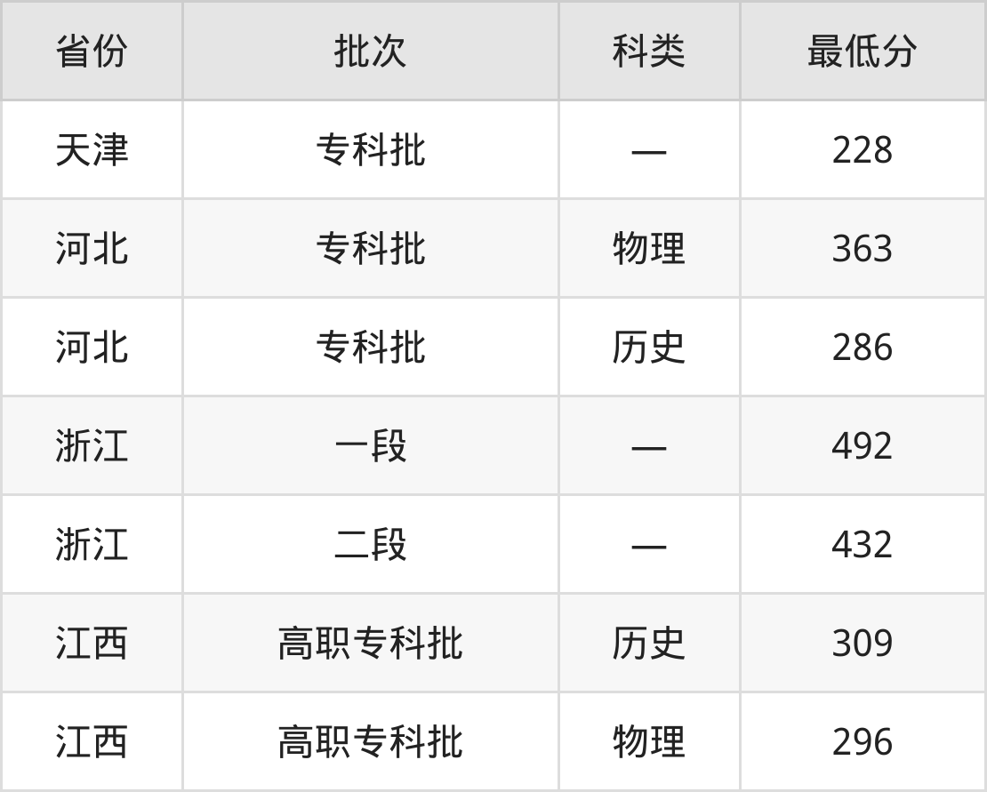 南昌理工学院市场营销专业在全国各省最低录取分数线为228分(天津),除此之外,在其余地区的最低分为浙江432分、江西物理类296分、河北历史类286分,以上数据均为2024年数据,供2025年高考生参考。