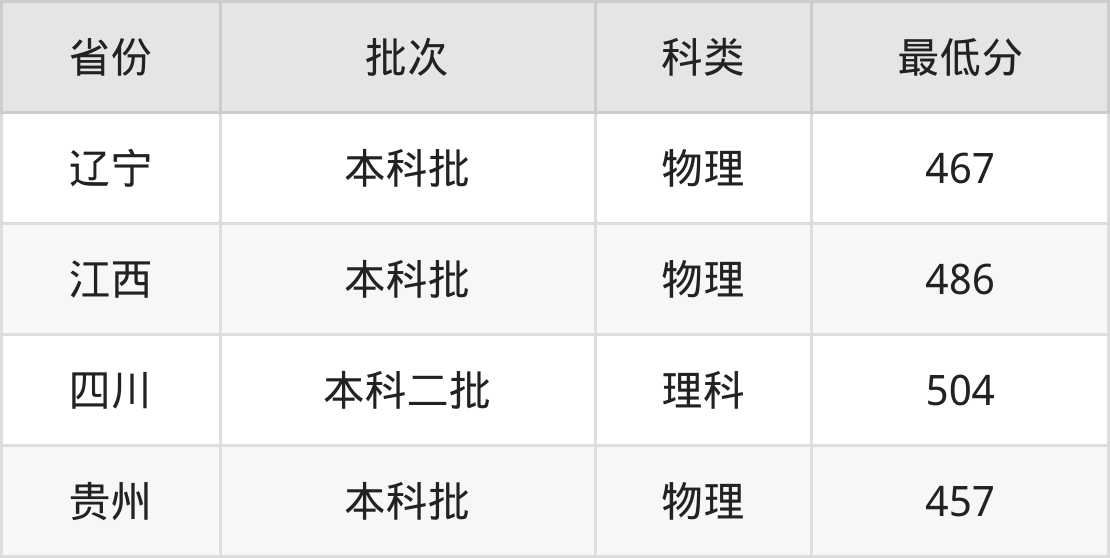 辽东学院机械设计制造及其自动化专业录取分数线从457分到504分不等,最低分数线如下: