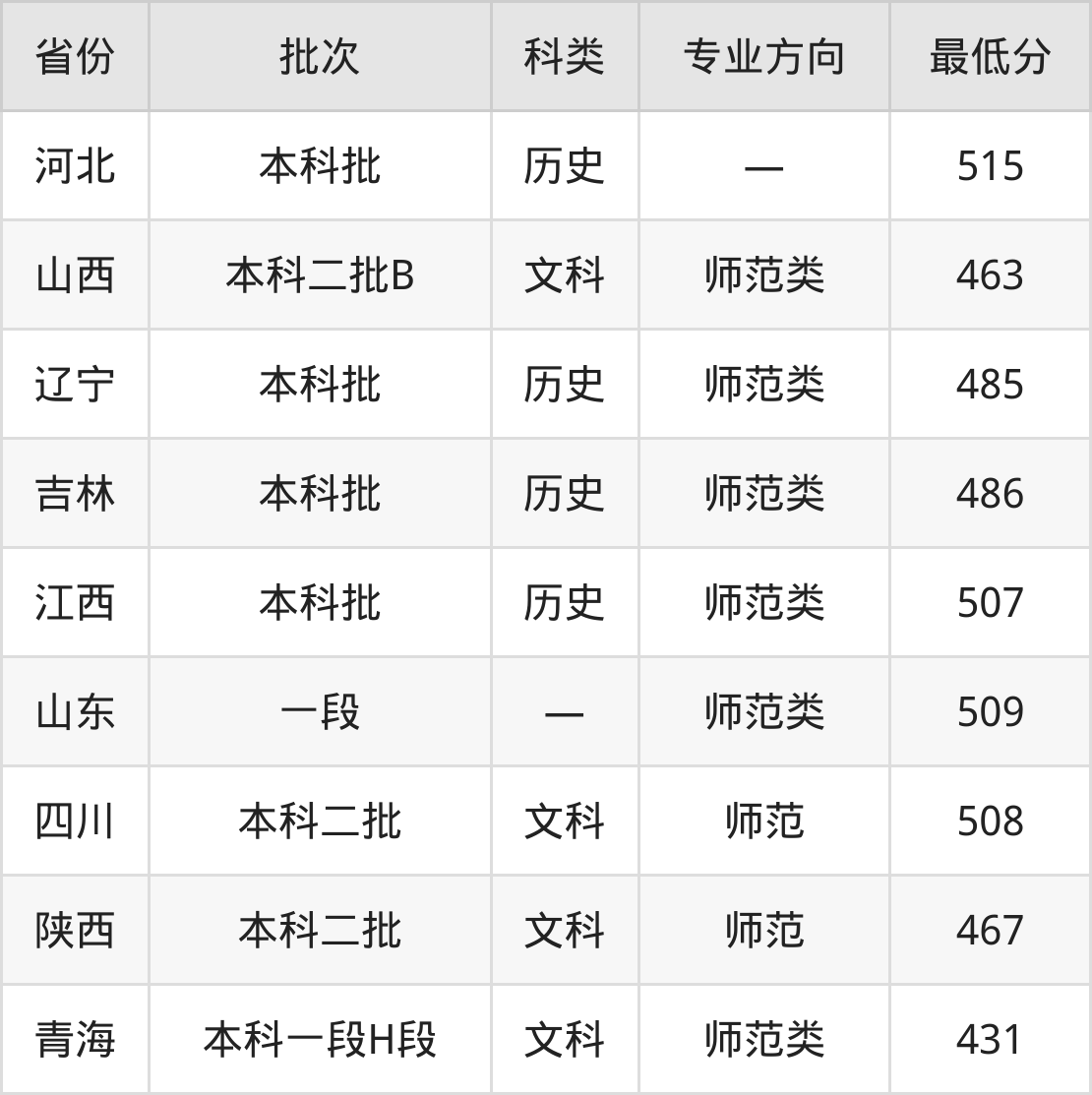 陇东学院历史学专业录取分数线从431分到515分不等,最低分数线如下: