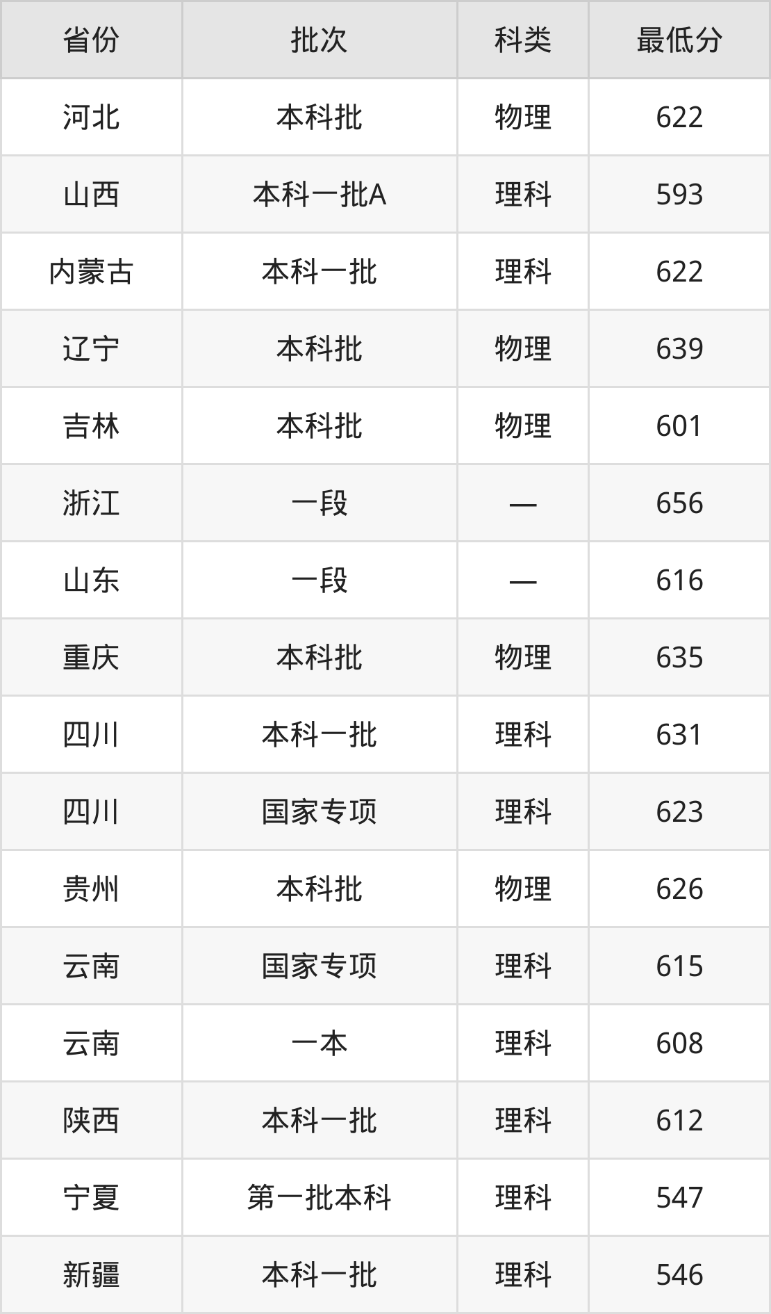 内蒙古:理科最低622分