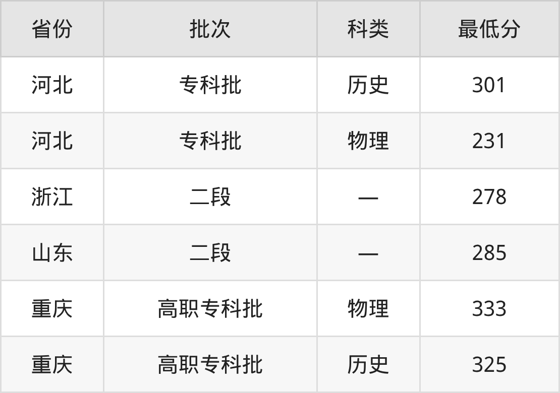 重庆智能工程职业学院无人机应用技术专业在全国各省录取分数线: