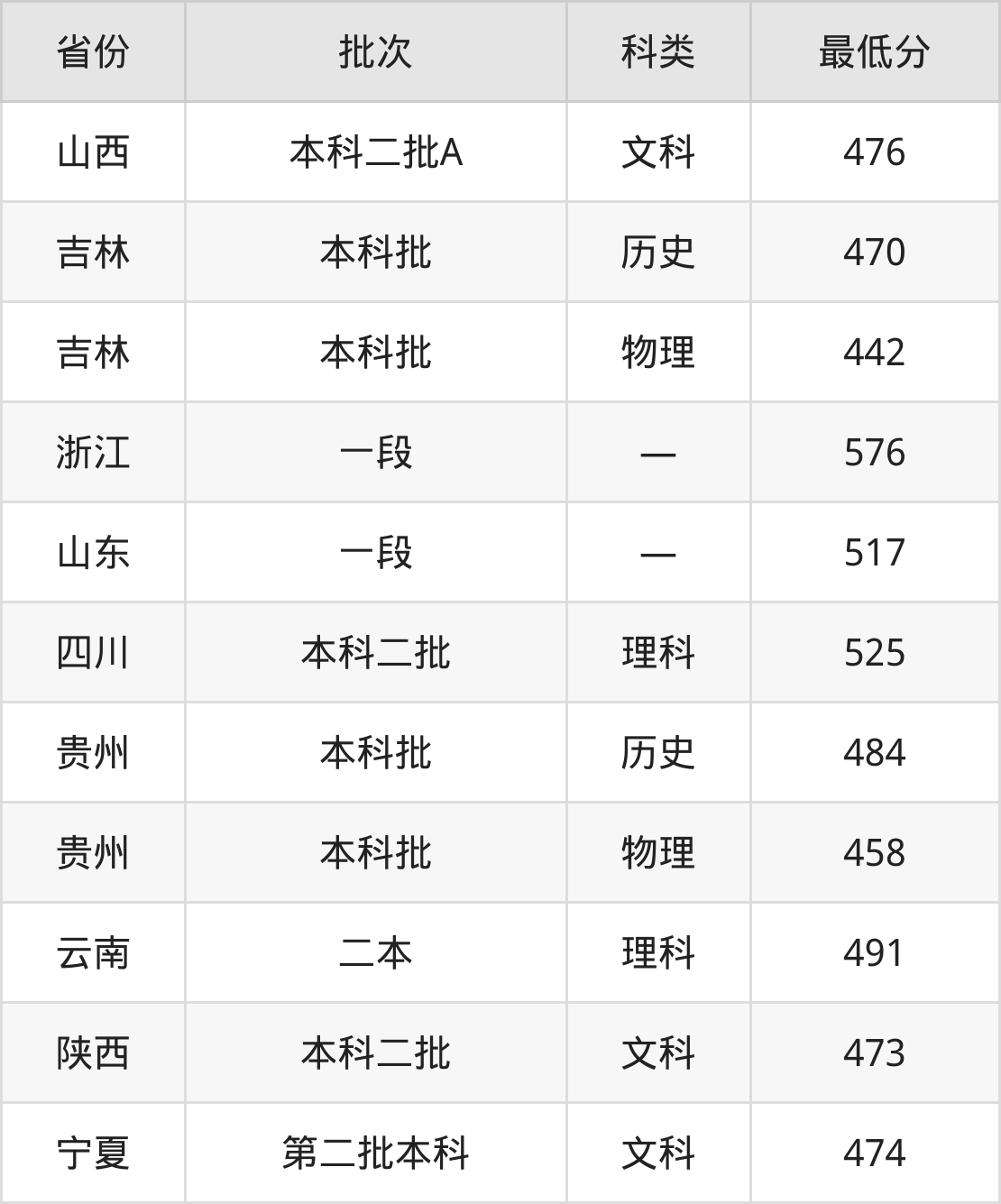 山西:文科最低476分