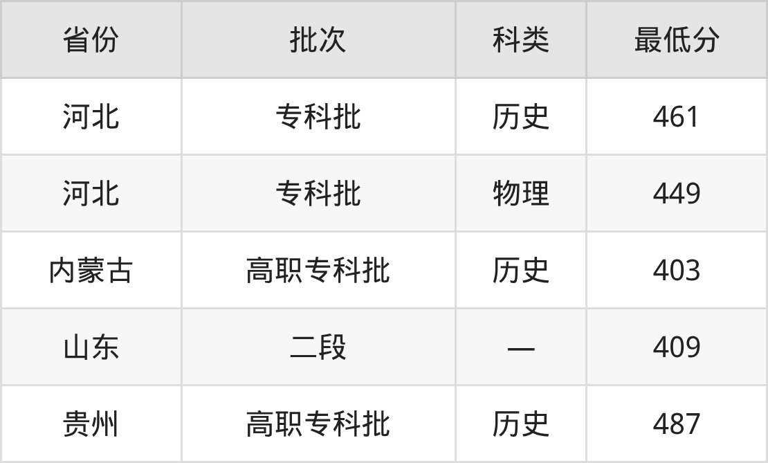 山东信息职业技术学院城市轨道交通运营管理专业在全国各省最低录取分数线为403分(内蒙古历史类),除此之外,在其余地区的最低分为贵州历史类487分、河北物理类449分、山东409分,以上数据均为2025年数据,供2026年高考生参考。