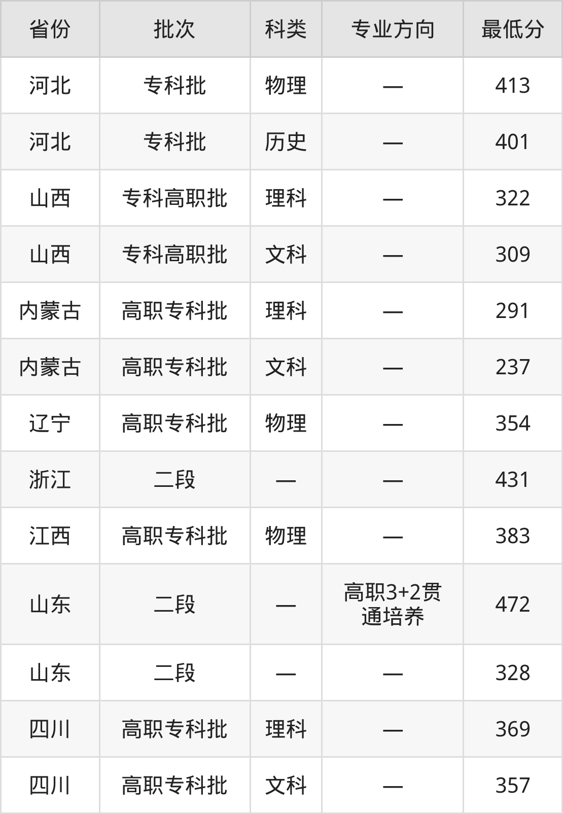 山东城市建设职业学院建筑工程技术专业录取分数线从237分到472分不等,最低分数线如下: