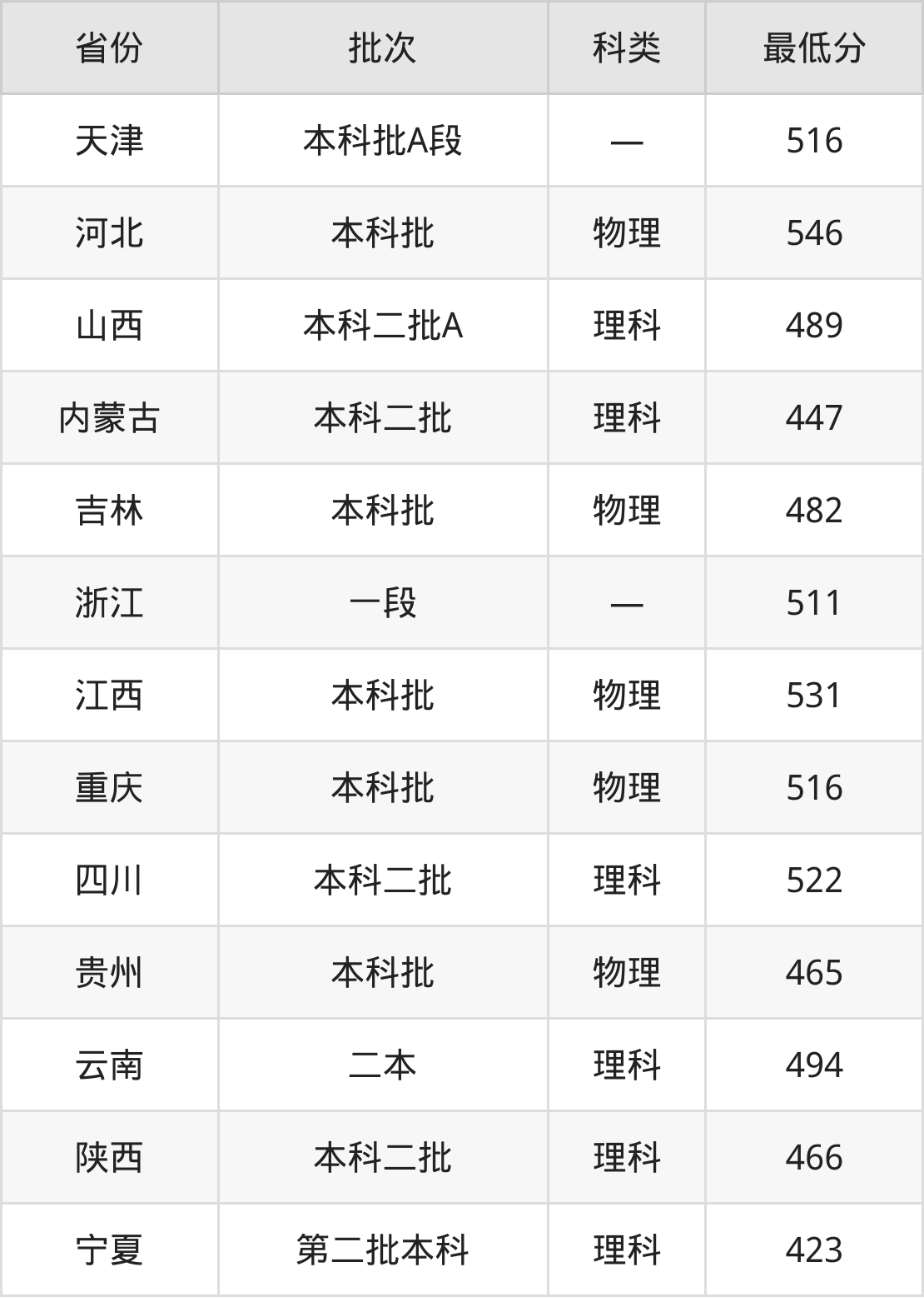 内蒙古:理科最低447分