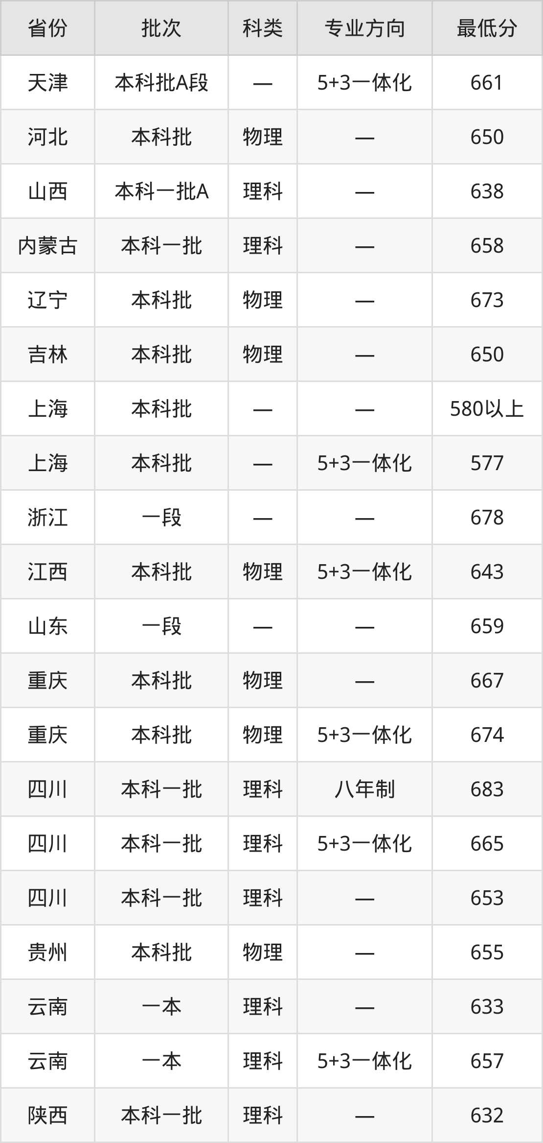 四川大学口腔医学专业录取分数线从575分到691分不等,在部分地区的最低分数线如下: