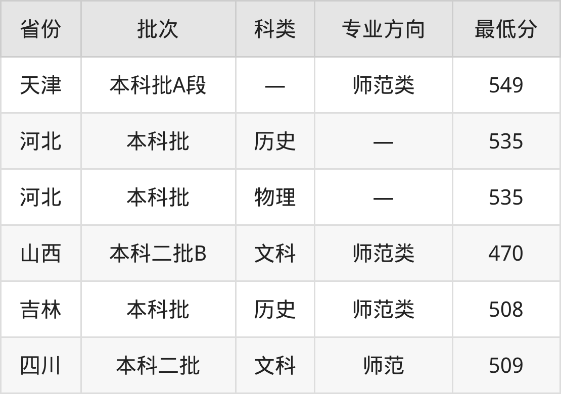 沧州师范学院汉语言文学专业录取分数线从470分到549分不等,最低分数线如下: