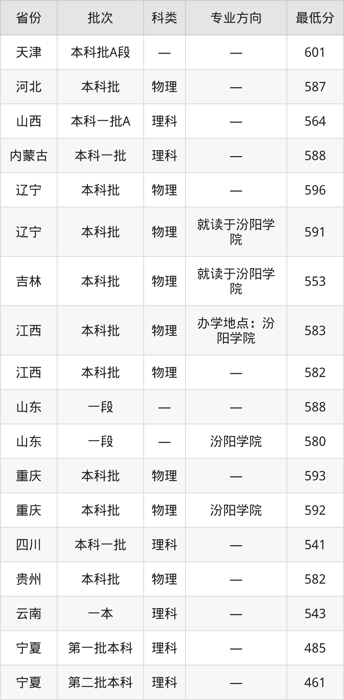 山西医科大学医学影像学专业录取分数线从461分到601分不等,在部分地区的最低分数线如下: