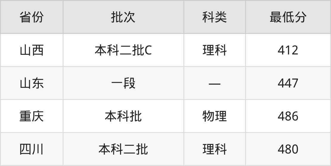 成都东软学院智能医学工程专业录取分数线从412分到486分不等,最低分数线如下: