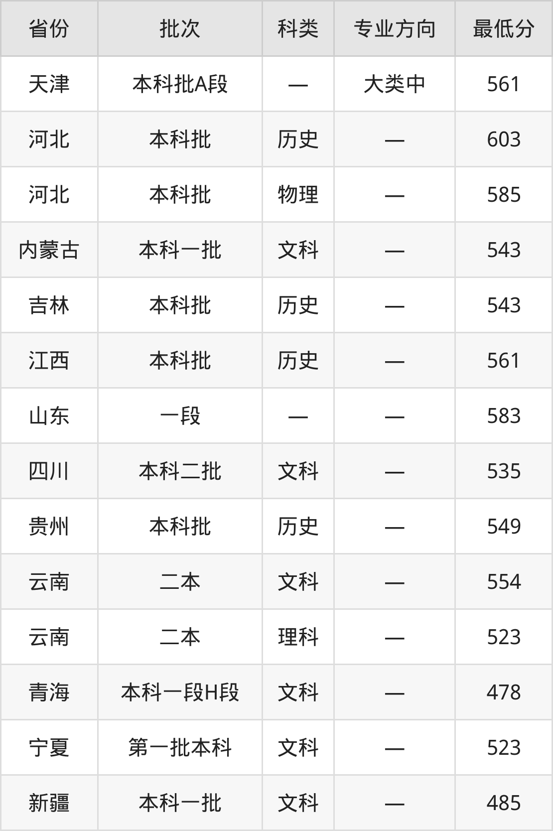 天津科技大学法学类专业录取分数线从478分到603分不等,在部分地区的最低分数线如下: