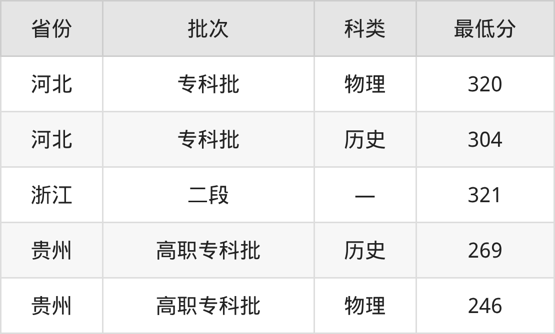 贵州铜仁数据职业学院计算机应用技术专业在全国各省录取分数线: