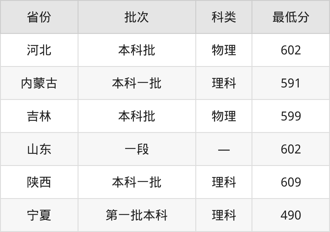 吉林大学康复治疗学专业录取分数线从490分到609分不等,最低分数线如下: