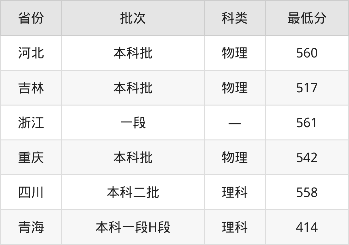 重庆科技大学电气工程及其自动化专业录取分数线从414分到561分不等,最低分数线如下:
